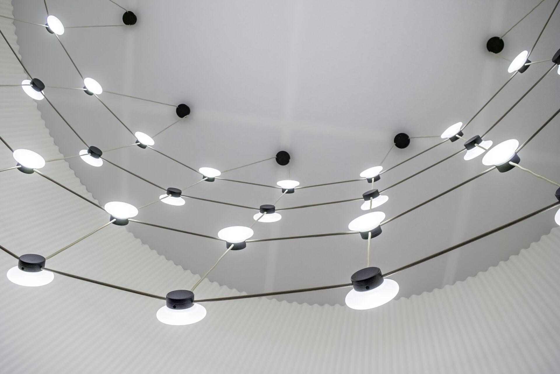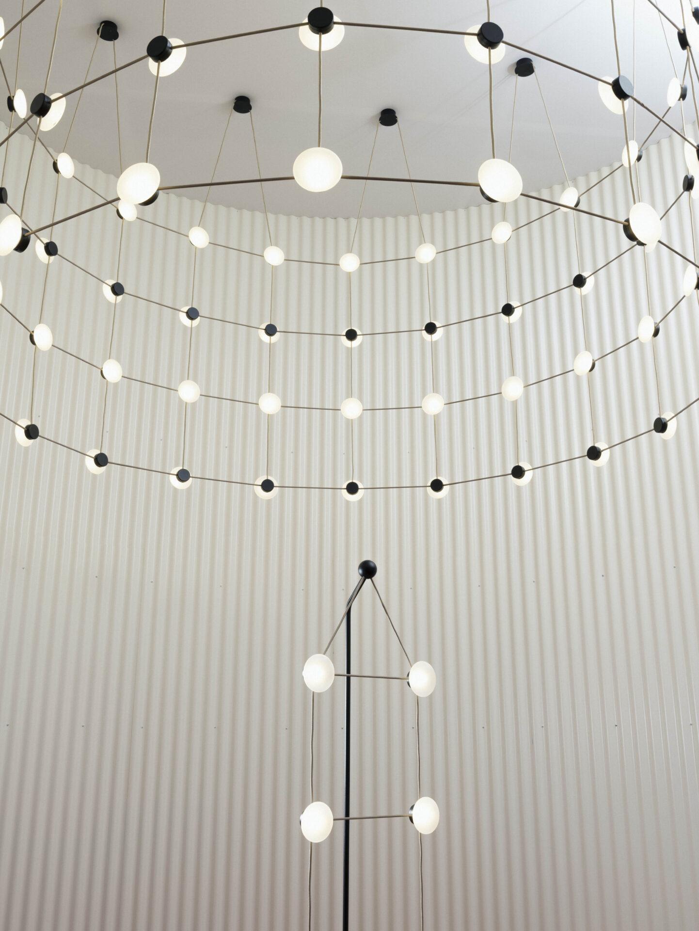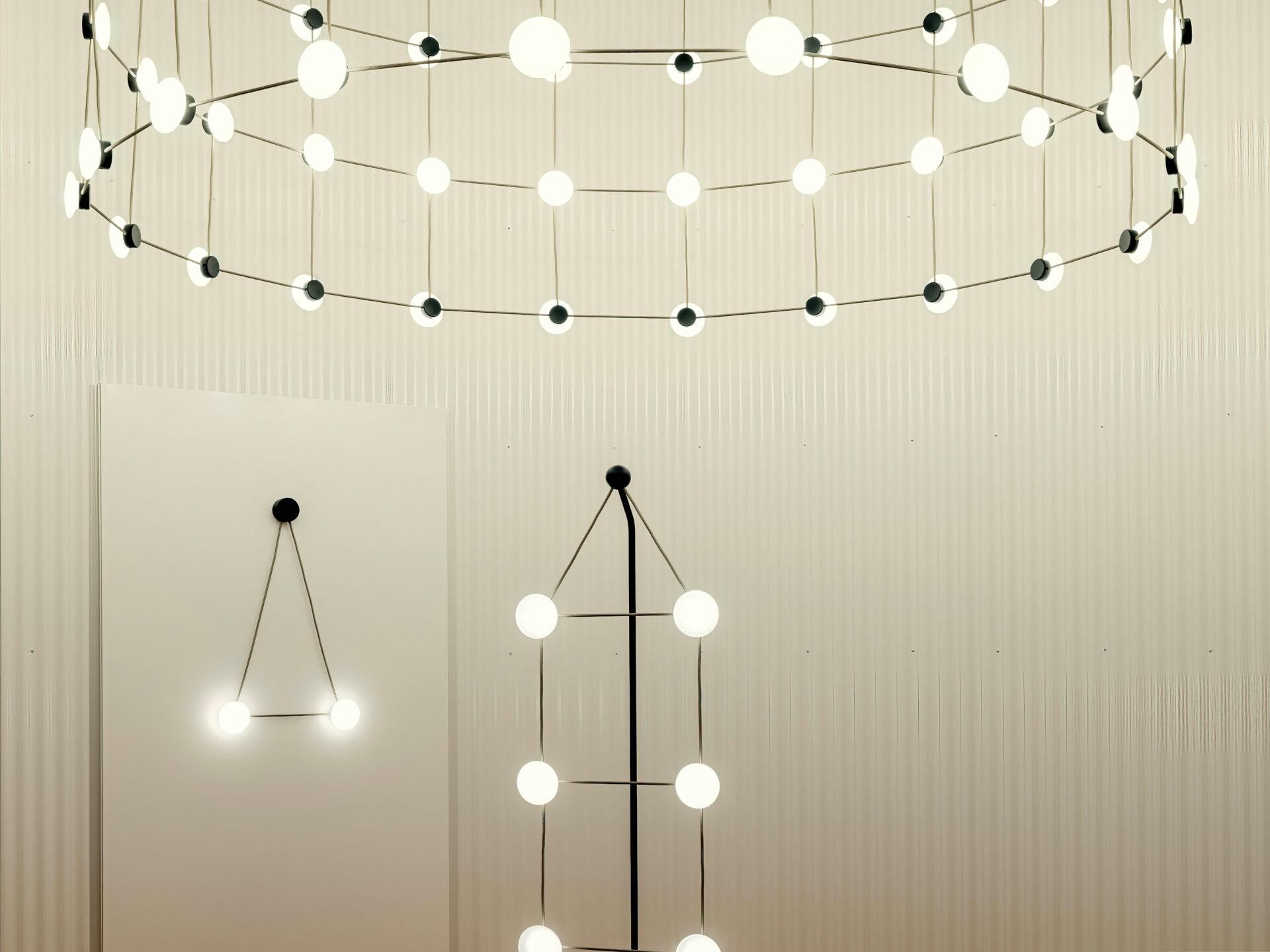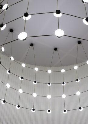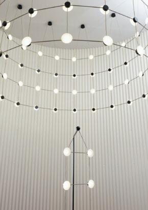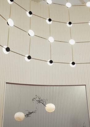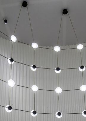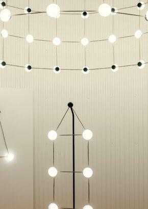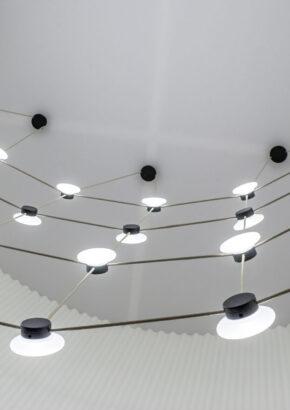 With Posillipo, Stadler redefines the typology of the pendant fixture through a rigorous, architectural approach. At first glance, the electrical cables appear to vanish, visually indistinguishable from the horizontal spacers. This seamless integration creates a cohesive, grid-like structure that challenges conventional expectations of suspended lighting.