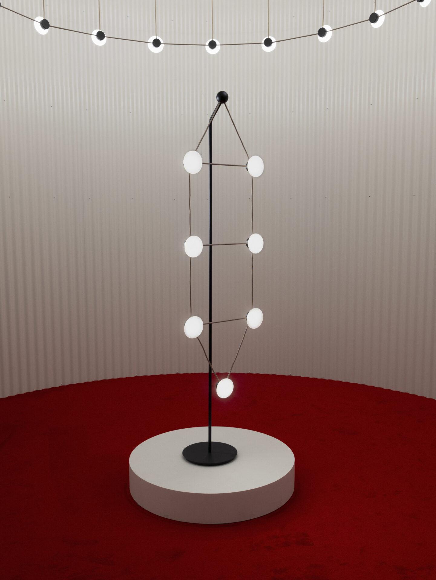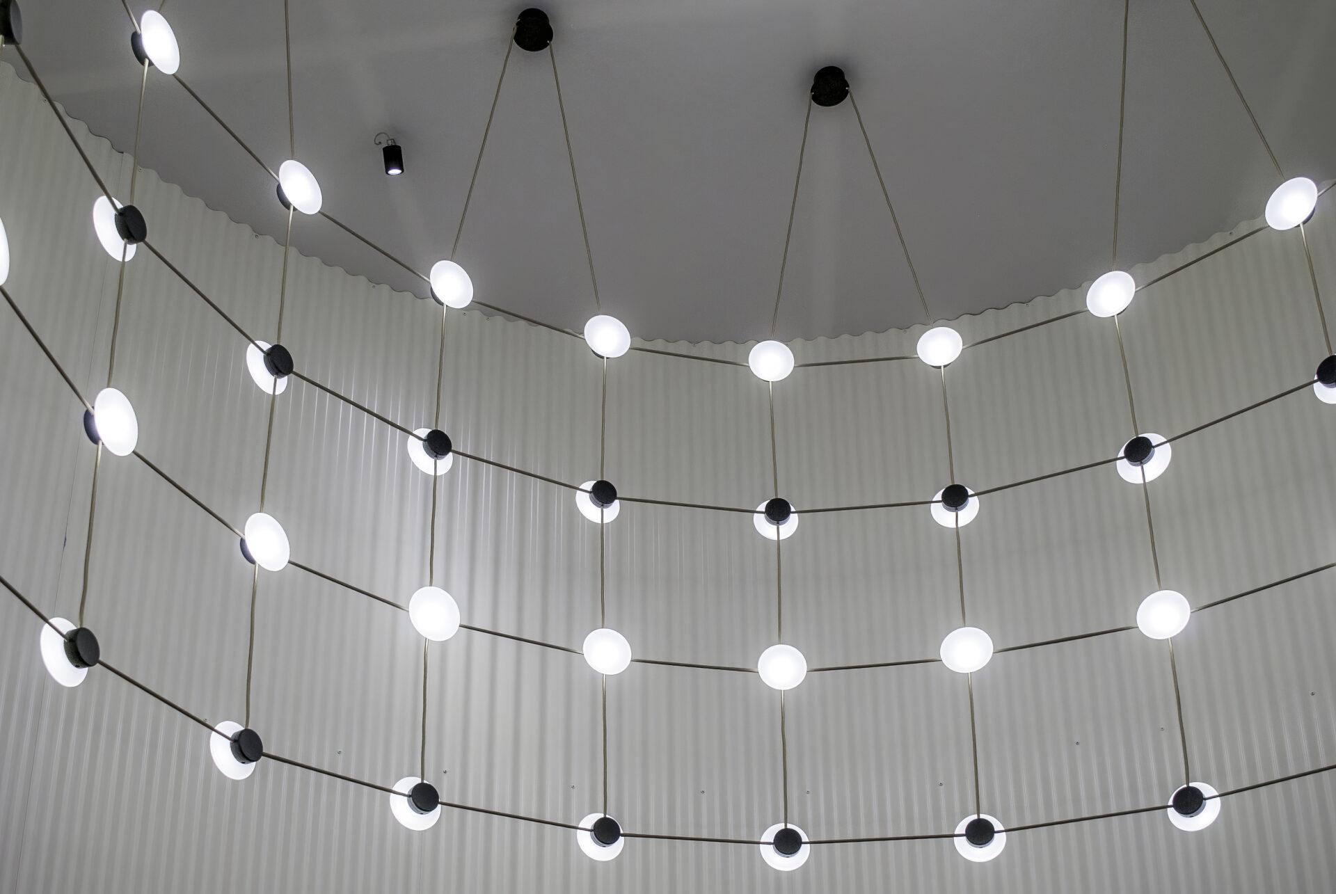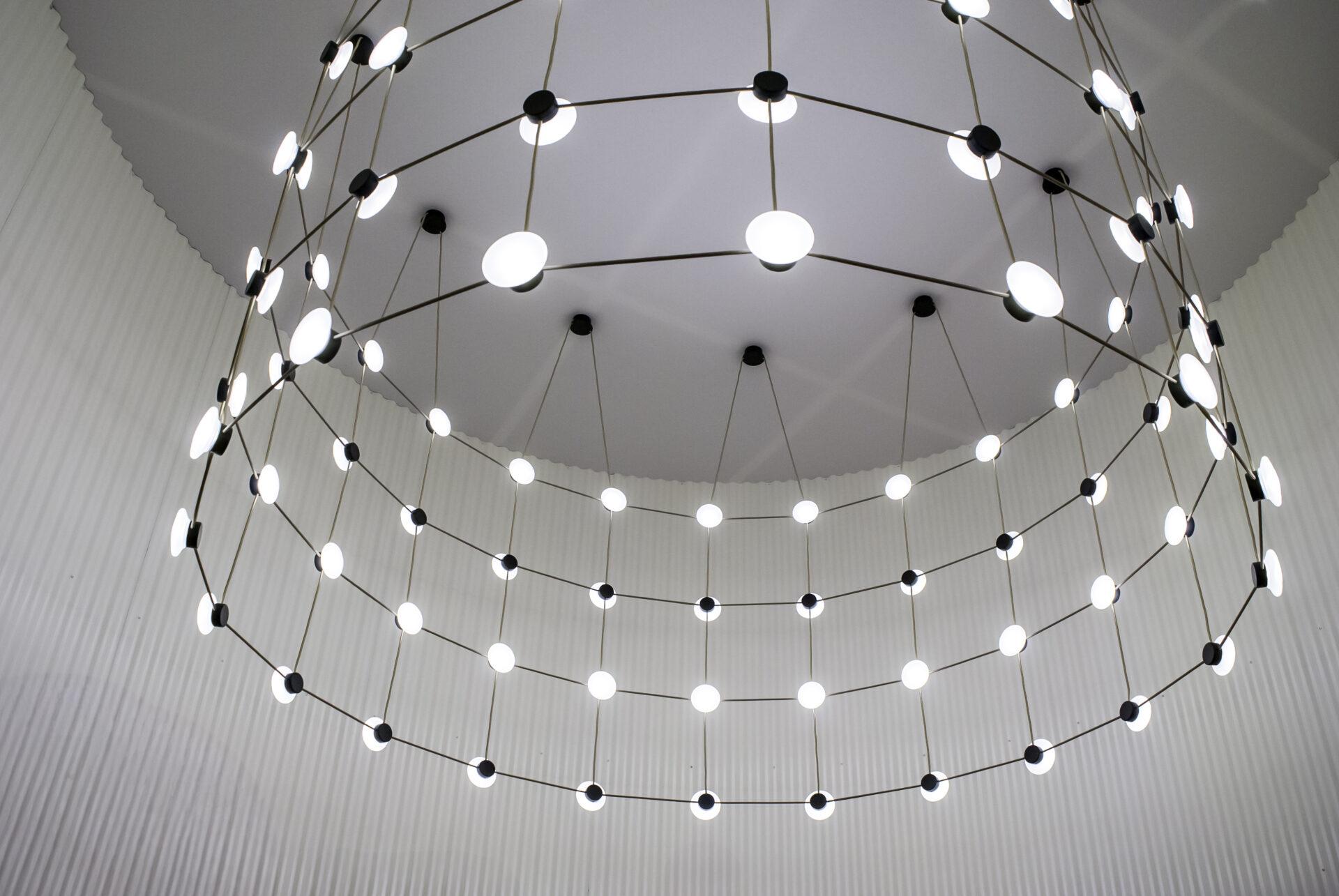 With Posillipo, Stadler redefines the typology of the pendant fixture through a rigorous, architectural approach. At first glance, the electrical cables appear to vanish, visually indistinguishable from the horizontal spacers. This seamless integration creates a cohesive, grid-like structure that challenges conventional expectations of suspended lighting.