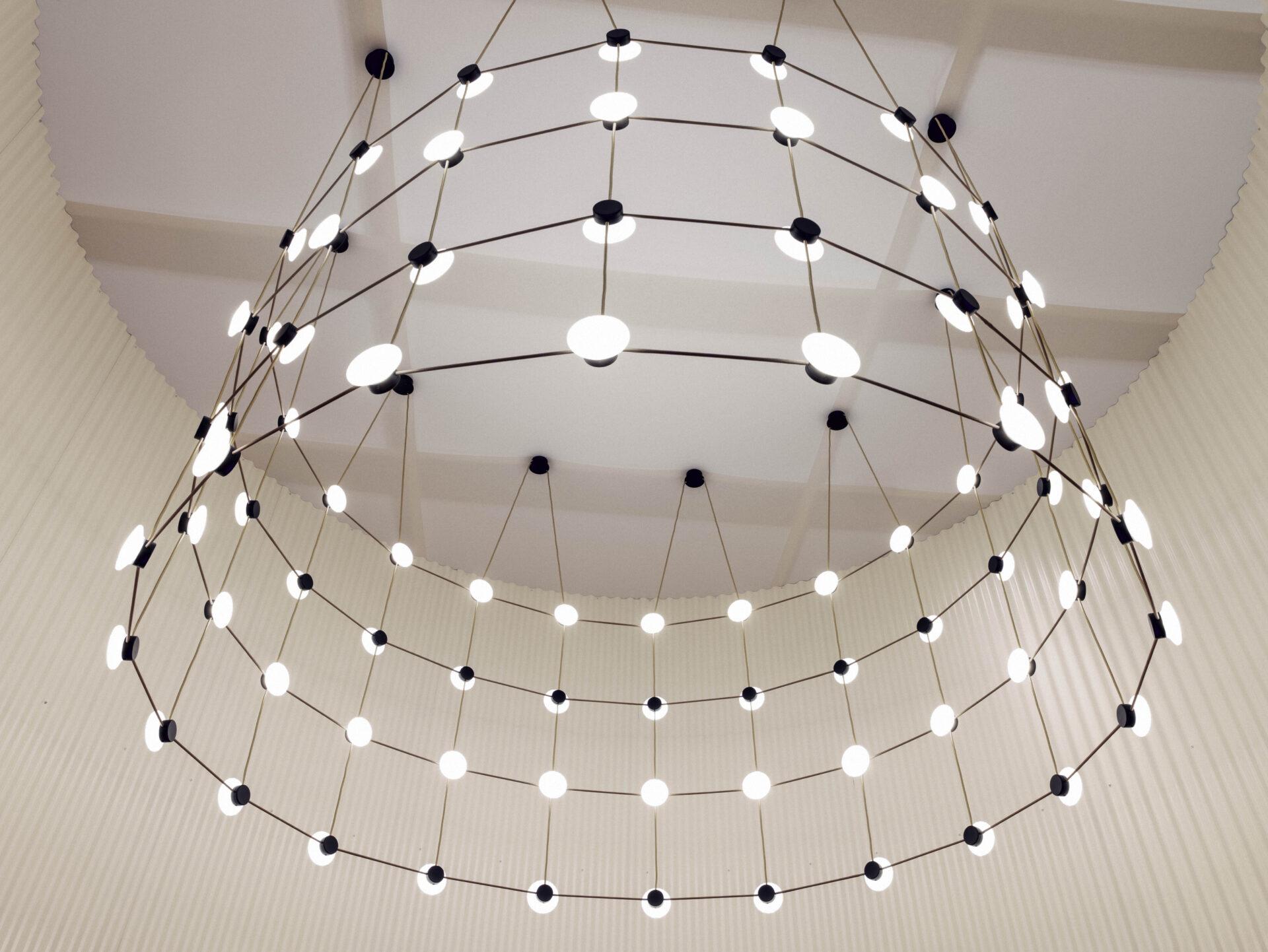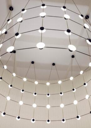 Both collections explore modular approaches to lighting, offering flexible solutions for hospitality, workplace, and commercial environments. From sculptural glass compositions to scalable architectural systems, Santo and Posillipo provide new ways to integrate light into the structure of a space.